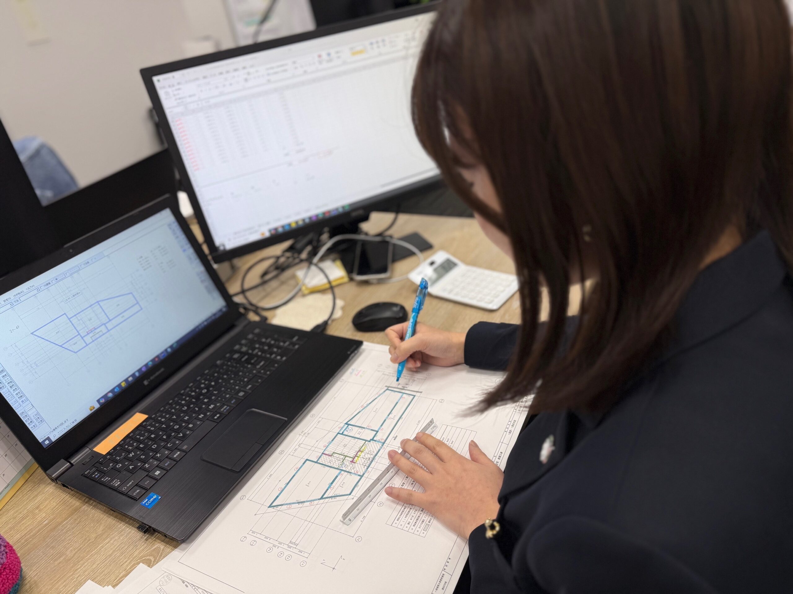 積算は全体を通して責任の重い仕事ではありますが、その分、図面を通じてプロジェクト全体の進行に貢献できることは大きなやりがいにもつながっています!