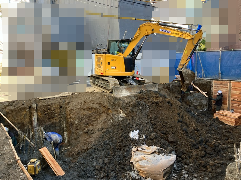 杭工事が完了しましたら、次は基礎を構築するために土を掘削していきます。