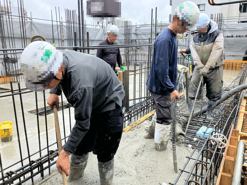 ▼生コンクリート打設時の様子