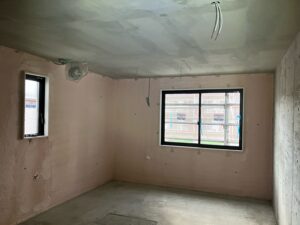 これらが終わると、次はお部屋を仕切る壁を作ったり、床の下地を組んだり、ボードを貼ったり…。