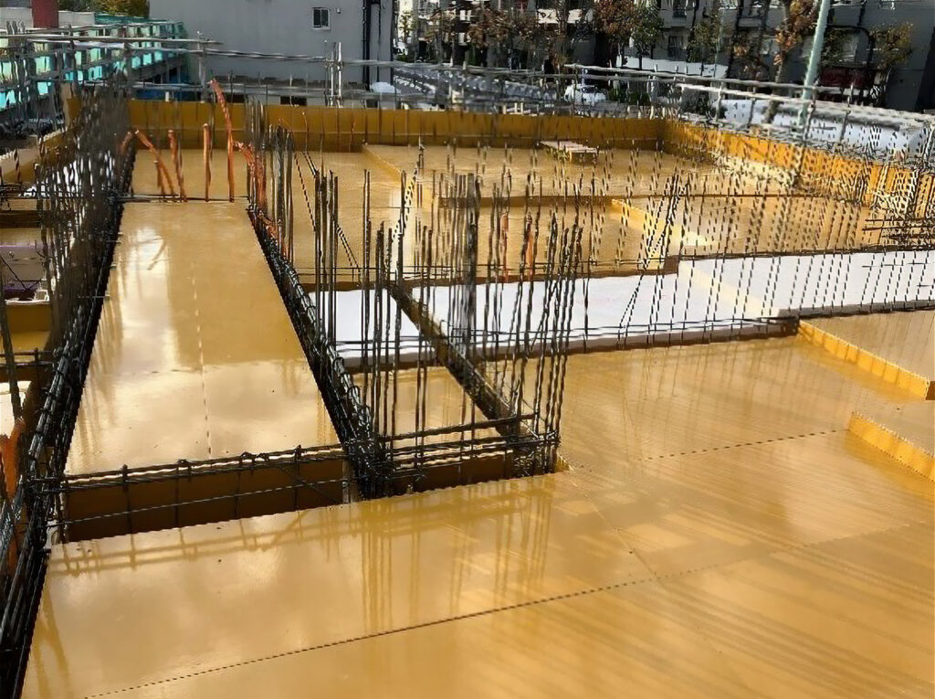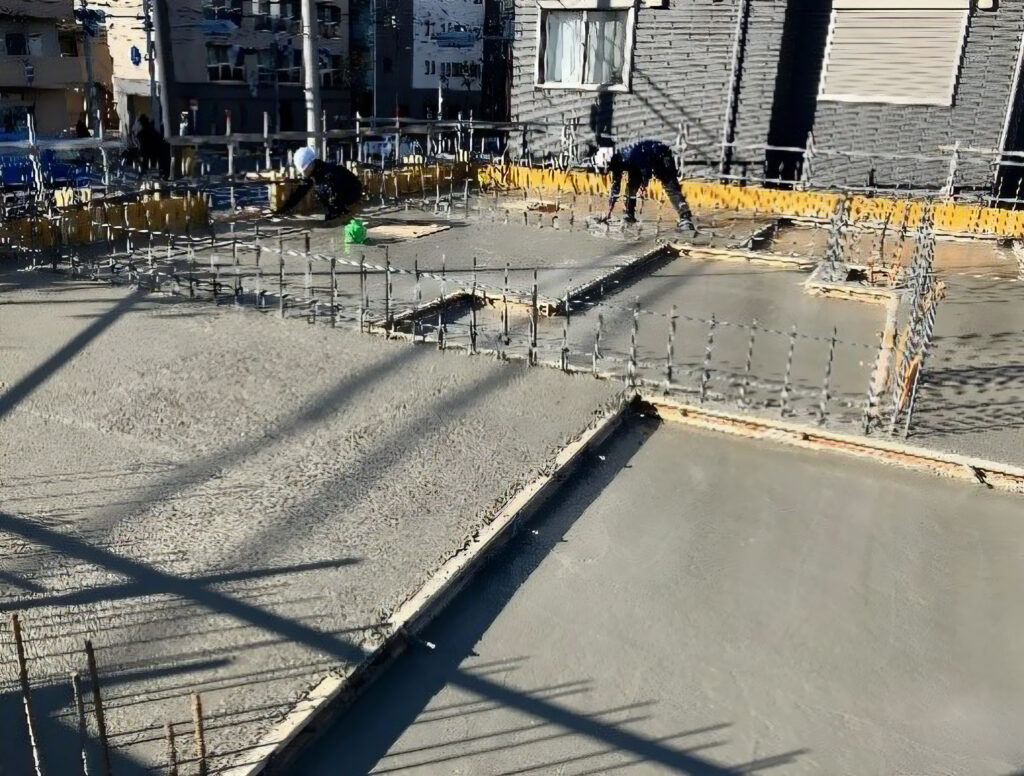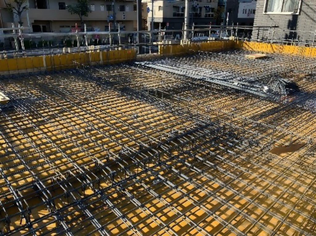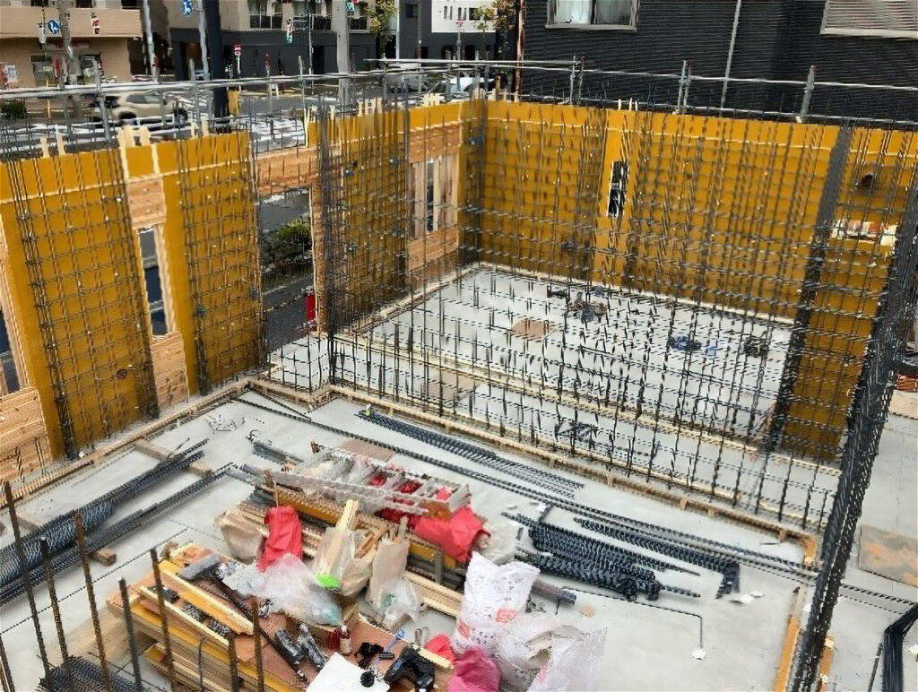 鉄筋工事/1階鉄筋 鉄筋工事/2階鉄筋 型枠工事/2階床型枠 コンクリート工事/1階壁2階床 型枠工事/1階型枠解体 足場工事/2階足場 DATE 工事期間:2025年10月~2026年6月 工事内容:マンション建設工事 構造:RC造5階建 延床面積:102.97㎡ 建築面積:514.85㎡